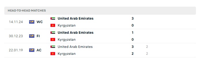 Lịch sử đối đầu Kyrgyzstan vs UAE