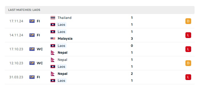 - Phong độ gần đây Lào