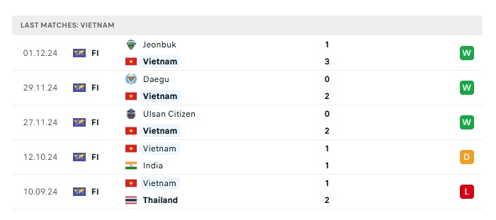 - Phong độ gần đây Việt Nam