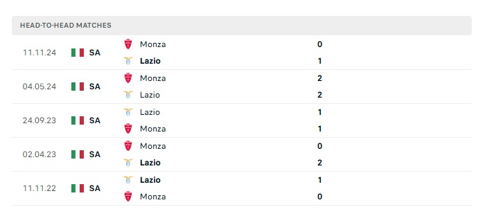 - Kèo tỷ số H2 Lazio vs Monza: 3-1