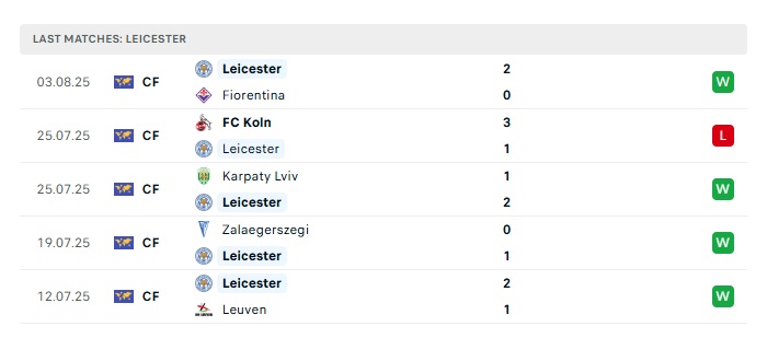 Trong thời gian vừa qua, Leicester đã có những kết quả thi đấu đủ tốt ở giai đoạn giao hữu tiền mùa giải. Tính trong 5 trận đấu gần nhất của Leicester, họ chỉ có 1 thua và còn lại là 4 chiến thắng. Trong khi đó thì Sheffield đang chỉ có 1 thắng, 2 hòa và 2 thua trong 5 trận đấu gần nhất của mình. Do đó, việc đội chủ nhà có 3 điểm trong ngày hôm nay là kết quả hoàn toàn dễ hiểu.