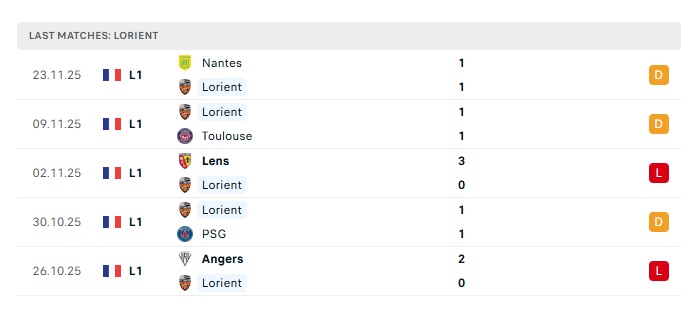 - Phong độ gần đây Lorient