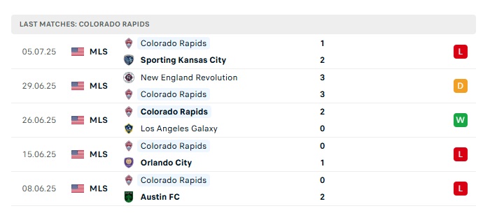 - Phong độ gần đây Colorado Rapids