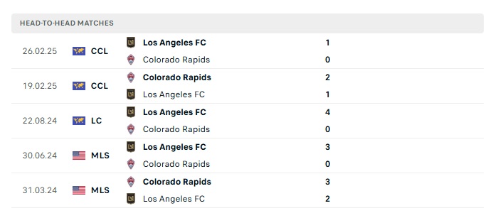 Phong độ gần đây Los Angeles FC vs Colorado Rapids