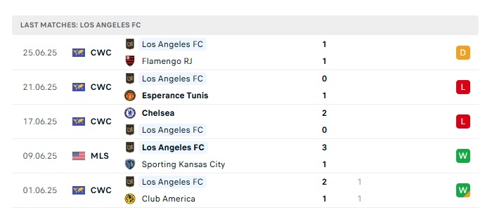 Phong độ gần đây Los Angeles FC vs Vancouver WC
