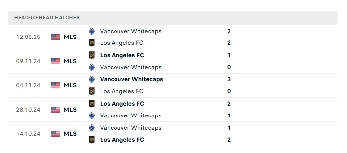 Lịch sử đối đầu Los Angeles FC vs Vancouver WC