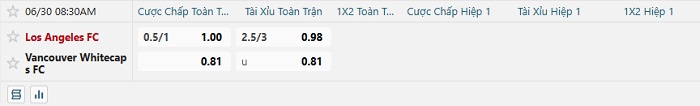 - Kèo tỷ số H1 Los Angeles FC vs Vancouver WC: 0-0