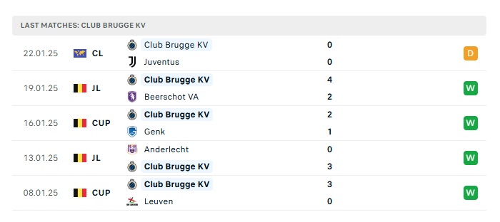 • Phong độ gần đây  Club Brugge