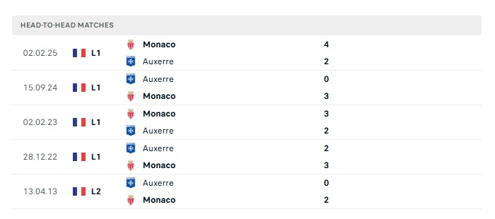 - Kèo tỷ số H2 Auxerre vs Monaco: 0-2