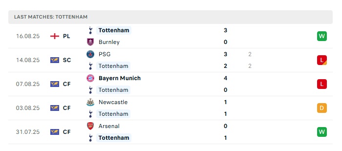 • Phong độ gần đây Tottenham