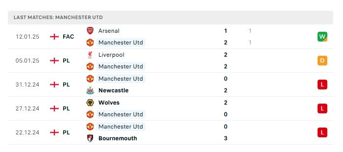 • Phong độ gần đây Man Utd