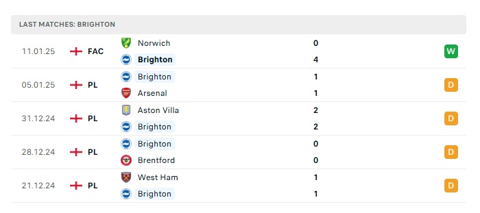 • Phong độ gần đây Brighton