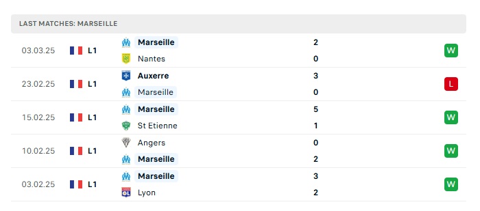 - Phong độ gần đây Marseille