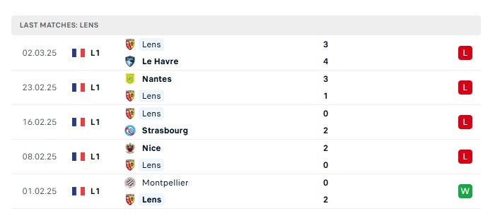 - Phong độ gần đây Lens