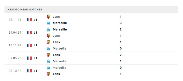 Lịch sử đối đầu Marseille vs Lens