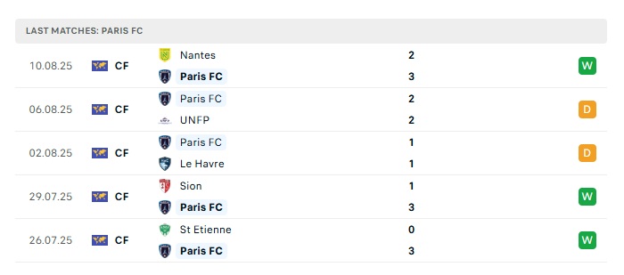 • Phong độ gần đây Paris FC