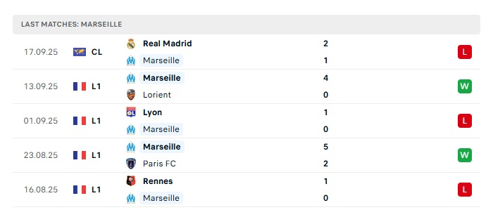 • Phong độ gần đây Marseille