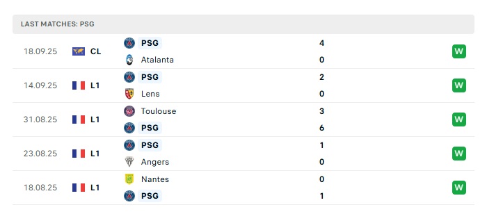 • Phong độ gần đây PSG