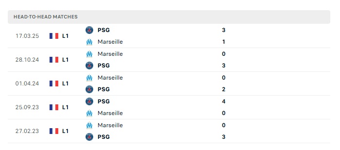 Phong độ gần đây Marseille  vs PSG