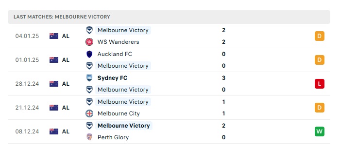 • Phong độ gần đây Melbourne Victory