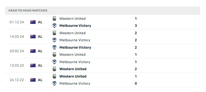 Lịch sử đối đầu Melbourne Victory vs Western United