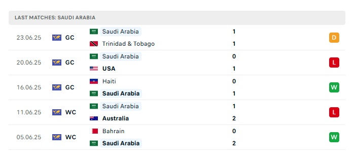 • Phong độ gần đây Saudi Arabia