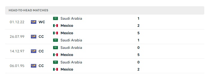 Lịch sử đối đầu Mexico vs Saudi Arabia