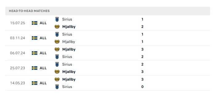 Lịch sử đối đầu Mjallby AIF vs Sirius