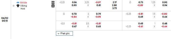 Bảng tỷ lệ kèo nhà cái Molde vs Viking