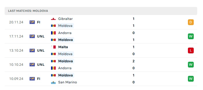 - Phong độ gần đây Moldova