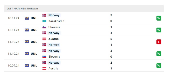 - Phong độ gần đây Na Uy
