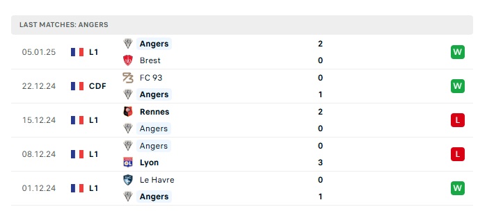 - Phong độ gần đây Angers