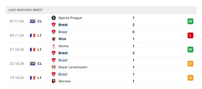 • Phong độ gần đây Stade Brestois