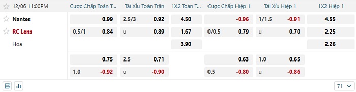 - Kèo tỷ số H1 Nantes vs Lens: 0-1