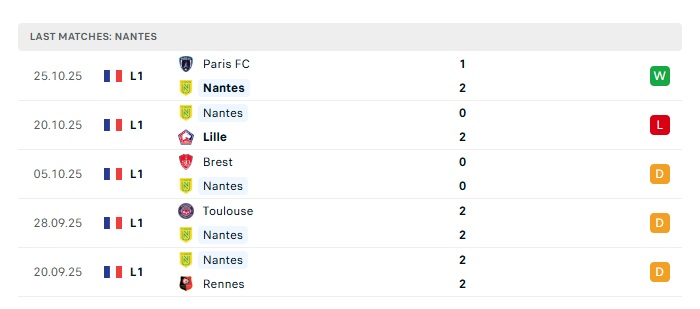 - Phong độ gần đây Nantes