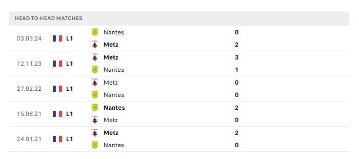 Lịch sử đối đầu Nantes vs Metz