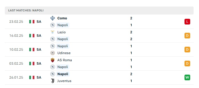 Là cặp đấu hấp dẫn nhất nửa sau mùa giải 24/25, Napoli gặp Inter sẽ là trận quyết chiến định đoạt ngôi đầu bảng. Hiện tại, Napoli đang tạm thời dẫn đầu BXH với 57 điểm sau 26 vòng đấu. Trong khi đó thì Inter Milan bám sát phía sau cùng với 56 điểm. Như vậy thì cùng với lợi thế lớn từ sân nhà, Napoli đang là đội có tỷ lệ thắng nhỉnh hơn đối thủ khi mà họ cũng không tốn sức tại C1.