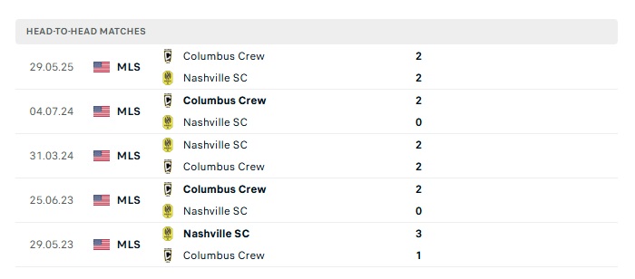 - Kèo tỷ số H2 Nashville FC vs Columbus Crew: 2-1