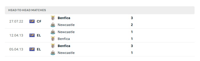 Lịch sử đối đầu Newcastle vs Benfica