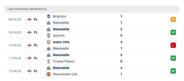 - Phong độ gần đây Newcastle