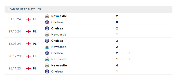 Lịch sử đối đầu Newcastle vs Chelsea