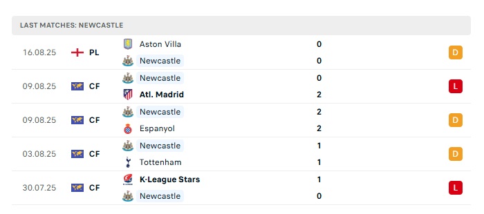 • Phong độ gần đây Newcastle