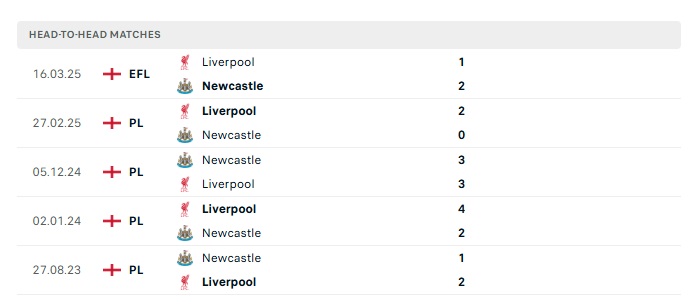Lịch sử đối đầu Newcastle vs Liverpool