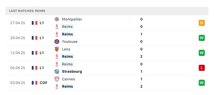 - Phong độ gần đây Stade Reims