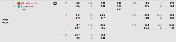 Bảng tỷ lệ kèo bóng đá North Macedonia vs Kazakhstan