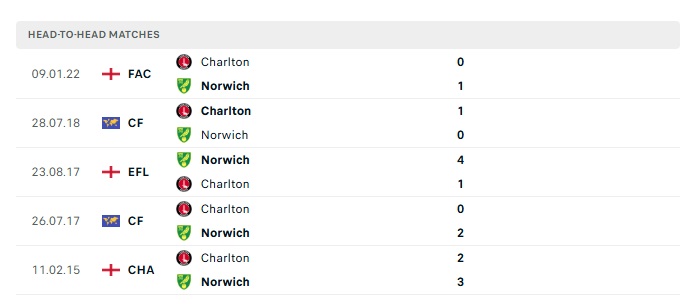 Lịch sử đối đầu Norwich vs Charlton Athletic