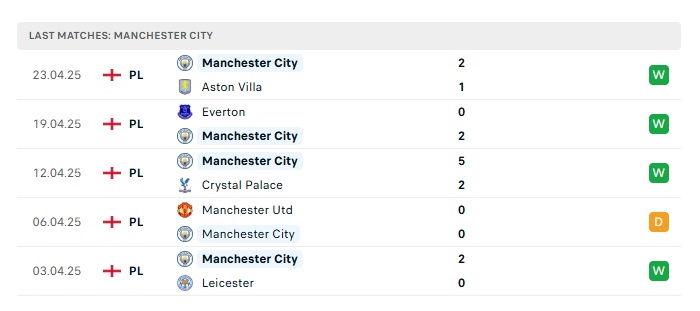 - Phong độ gần đây Man City