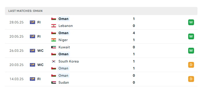 - Phong độ gần đây Oman