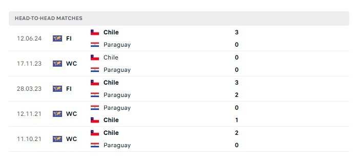 Lịch sử đối đầu Paraguay vs Chile