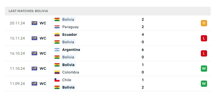 Không còn một chút hy vọng nào ở World Cup này, Peru xem như đã xác định mình ngồi nhà xem các đội khác thi đấu. Nên biết rằng đội chủ nhà Peru hiện tại đang có mặt ở vị trí chót BXH với 7 điểm sau 12 vòng. Trong khi đó thì Bolivia lúc này đã có mặt ở vị trí thứ 7 cùng 13 điểm. Rõ ràng, sự chênh lệch này sẽ khiến cho chủ nhà Peru gần như không còn cơ hội giành chiến thắng.